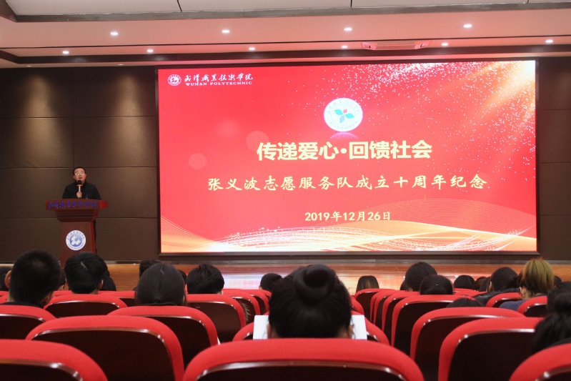 武职网讯(通讯员 周柳 大学生记者 黄艳 摄影 杨小同)12月26日晚,张义波志愿服务队成立十周年纪念活动在凌峰楼C11报告厅成功举行。校团委书记杨爱霞、张义波志愿服务队指导老师黄晶晶、社团创始人我校优秀毕业生张义波和近300名志愿者代表参加活动。