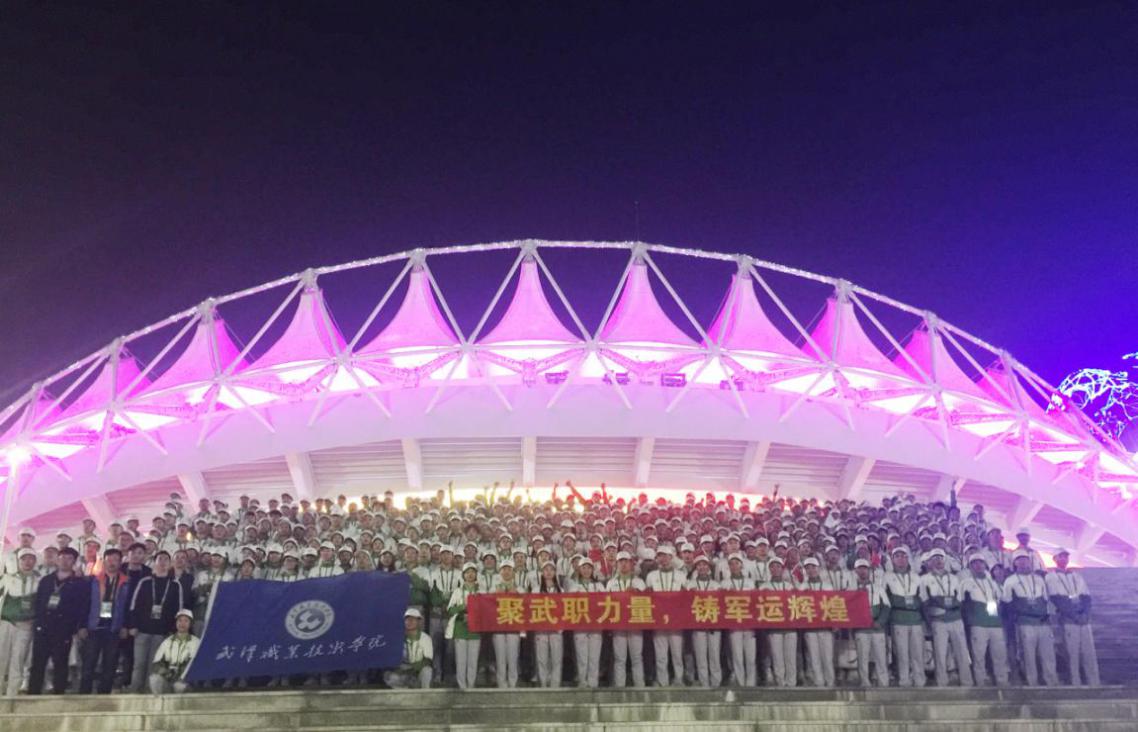 2019年4月初,第七届世界军人运动会开幕式演职人员的招募号角正式吹响,武汉职院的同学们报名踊跃而热烈。经过层层比拼,建筑学院26名同学、电信学院24名同学、商学院5名同学、纺服学院2名同学和文传学院2名同学从近千名同学们脱颖而出,最终入选开幕式演员。旅游学院旅管18202班覃秋莹同学入选开、闭幕式名牌手。