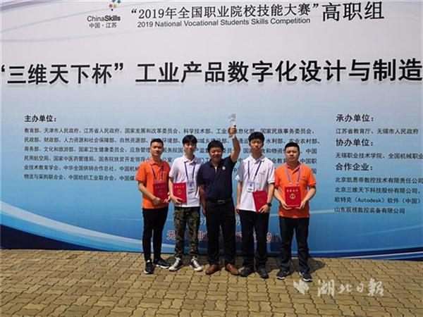 训练了千百次,成功总会在不经意间等待着坚持不懈的人。心之所向,素履以往。他们在苦苦探索、历经磨难之后,终有所获。然而,就在比赛要结束的时候,团队设计的工件出了问题,工件的螺母扭不上去。关键时刻,他们没有慌张、放弃、沮丧,因为他们相信自己,相信团队合作能够解决问题。最终,经过两天6个小时的紧张比赛,他们代表湖北省赢得了全国高职技能竞赛工业产品数字化设计与制造赛项的最高荣誉,摘得全国一等奖,成功填补了湖北省在此赛项中一等奖为零的空白。指导老师赵建林和刘凯获评“全国大赛优秀指导老师”称号。