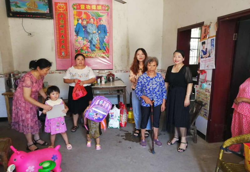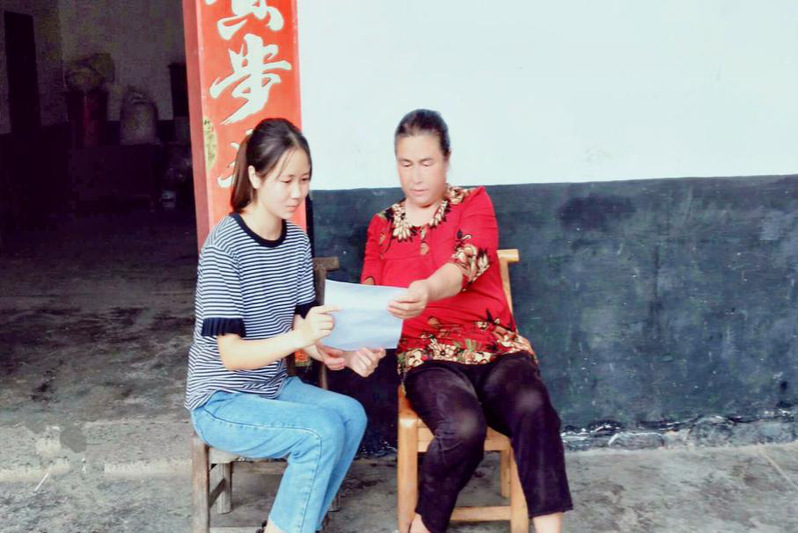 8月17日,“为爱而行、你我同在”团队第二小组徐思淇、郭子莘、谈长虹三人则来到湖北省黄冈市英山县五一村进行脱贫攻坚暑期社会实践。包装18301班徐思淇将此行目的与当地村支书沟通后,村支书表示非常支持,并指派村妇联主任和村财政组长带领实践团队一起,带着大米、食用油等物质慰问两户精准脱贫帮扶对象。