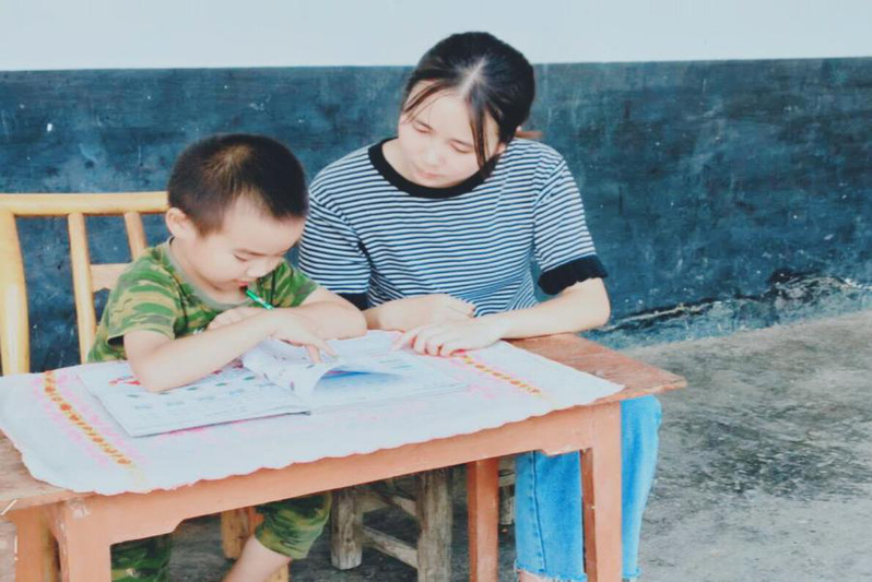 纺贸19301班张清贵辅导入户家庭孩子学业