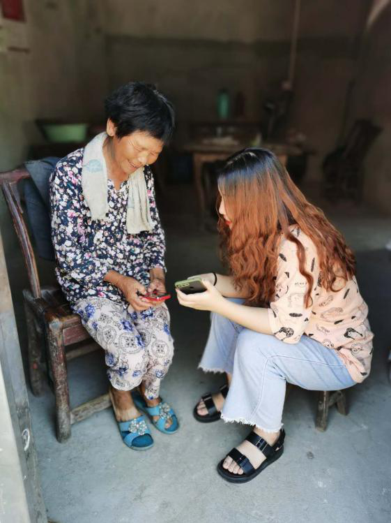 第二家帮扶对象是一位叫胡美芳的孤寡老人。据了解,两个女儿出嫁后,七十多岁的胡美芳老人还要顶着炎炎烈日收茶叶。徐思琪和团队成员为老人送上慰问物资,还教老人手机使用方法,叮嘱老人疫情期间注意身体。老人感慨不已:“扶贫政策就是好,为我们百姓解烦恼,感谢武汉职业技术学院,感谢党和政府的关怀!”