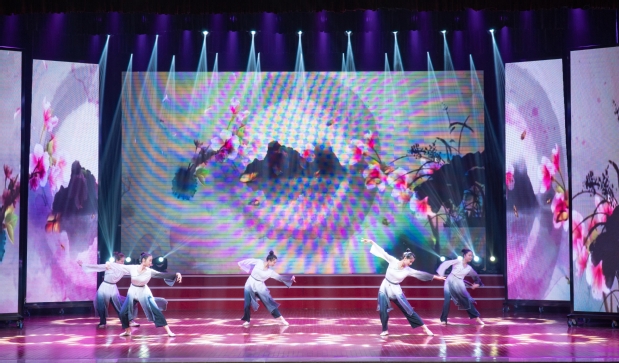 为测试舞台灯光及音响效果,施工方代表开启礼堂舞台灯光和音响设备,学校大学生艺术团成员献上表演唱和现代舞。色彩绚丽美轮美奂的灯光,四体环绕层次分明的音响,变幻绚烂立体大气的舞台效果,让在场人员赞不绝口。学校党委副书记胡象斌与项目施工单位代表进行了亲切交谈,代表学校对施工单位精心设计、高质量施工表示感谢。