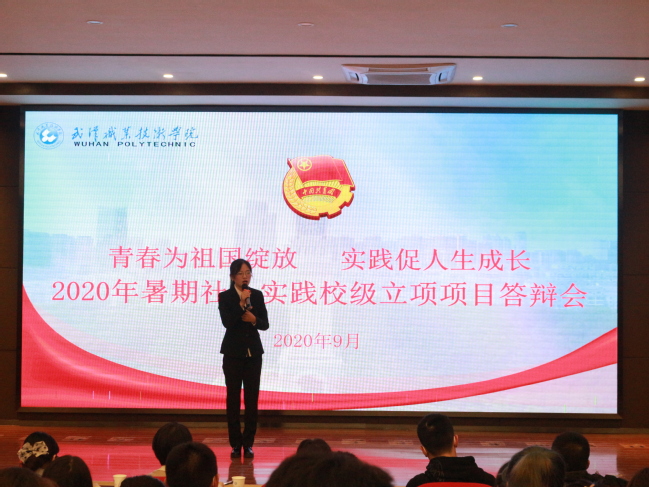 武职网讯(通讯员 罗露 大学生记者 周凯迪 摄影 罗俊伊 易志勇)2020年是我国脱贫攻坚战的收官之年,突然爆发的新冠疫情产生了诸多不利影响,在疫情防控常态化背景下,2020年的暑期社会实践有了新的形式,校团委动员武职青年采取云组队、线上线下联动、就近就便、返家乡锻炼……,9月22日晚,2020年暑期社会实践校级立项项目答辩会在凌峰楼C11报告厅举行,10支校级立项暑期社会实践重点团队一一展示实践成果,并在现场进行答辩。校团委全体专职团干、各学院分团委书记到场参与并担任评委,各立项项目团队成员及各学院学生代表共计两百余人到场观摩,现场气氛热闹、精彩纷呈。