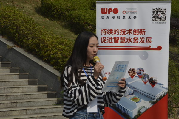 校团委社团部学生负责人、空乘19302班唐小洁宣读了《大学生节水倡议书》,号召全校学生树立主人翁意识,爱校如家,积极投入到节约用水行动中来。