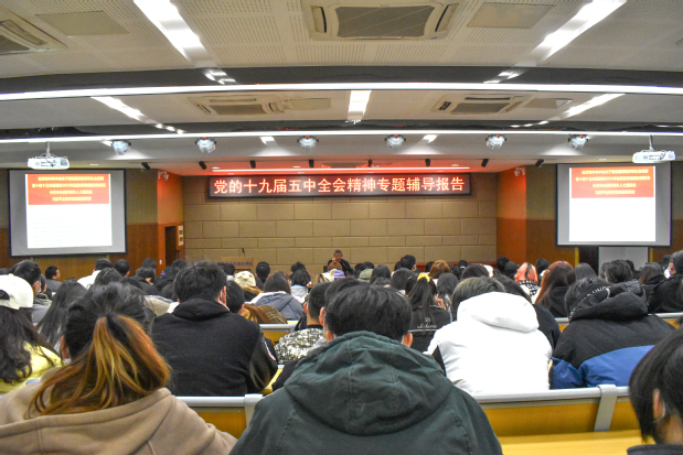 武职网讯(通讯员 罗露 摄影 马哲学 喻沛瑶)12月3日中午,党委书记、校长李洪渠在逸云楼113报告厅为武职青年作《学习领会五中全会精神 奋发图强立志成长成才》专题辅导报告。学校第十期“青马班”学员、爱学社成员,艺术设计学院入党积极分子、青年教师及团干代表共270人参加学习。