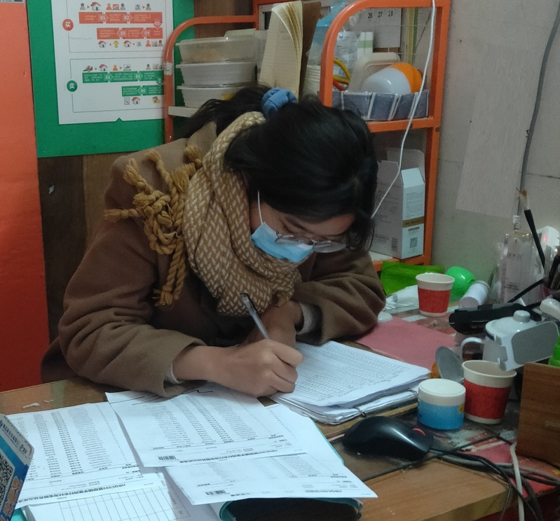 爱学社社长张幼认真审核、登记村民信息