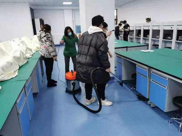 ——进实训教室。2月28日下午,志愿者们来到第一工业中心,活动负责人廖骏杰强调注意事项后,对参与人员按小组进行任务分配,包干打扫不同的区域。学生配合老师,各小组拿起工具迅速进入工作状态,扫地、拖地、抹桌子、细心检查和调试实训室里的每一台设备,小心移动各个试验仪器。经过辛勤劳动,实训室变得整洁明亮,实训器材等物资摆放得井井有条,确保了开学第一课的顺利进行,同时让学生增强了爱护实验器材、呵护实验室环境的意识。学生志愿者纷纷表示,希望能够通过实际行动,号召更多的同学养成良好的生活习惯,不乱丢垃圾,不随意摆放物品,不损坏实验器材。