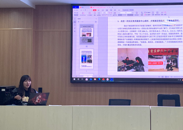 报告会上,入党发展对象、积极分子通过精心制作的PPT展示各自践行“七个一”实践活动成果和感悟,现场精彩纷呈,掌声热烈。包装19302班入党发展对象郑夏莲说:“不同的实践活动带给我不同的思考、感悟和变化。走进社区党员群众服务中心,我了解到打赢脱贫攻坚战就一定要把精准扶贫落到实处;与拥有三十年党龄的老党员交流,真切感受到他们心里对党的感激和和憧憬;每天坚持畅阅打卡《学习强国》,让我养成了自主进行理论学习的习惯……”