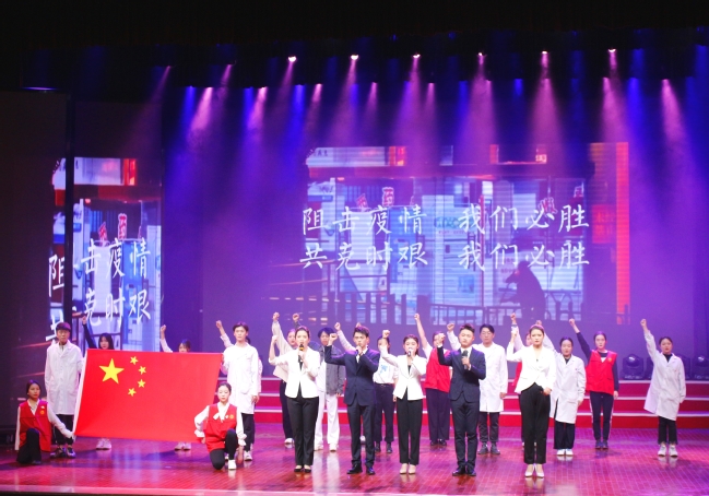 一个时代有一个时代的主题,一代人有一代人的使命。文化与传媒学院朝气蓬勃地演绎《强国一代有我在》,诠释新时代中国青年的使命。商学院的《红旗飘飘》热血满满,用深情激昂的演唱传递着红色基因,诉说着对祖国的赤子之心。家是最小国,国是千万家。计算机技术与软件工程学院用恢弘的歌舞、平实的歌词唱出了无数人的心声,娓娓道出了国与家的深厚情感,展现了国的强大和家的祥和。大学生艺术团选送的抗击疫情主题节目《我看见》,用情景剧与诗朗诵的形式向勇于担当、共克时艰、奋战在防疫一线的“逆行者”致敬。