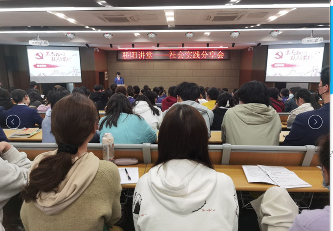 武职网讯(通讯员 马瑞阳 大学生记者 韩秋昱 刘舒琪)3月31日中午,旅游与航空服务学院骄阳讲堂在逸云楼113报告厅迎来本学期首场活动,该院专职组织员周雯、学生党支部书记、入党积极分子齐聚一堂,聆听7名骄阳学子分享寒假社会实践感悟。