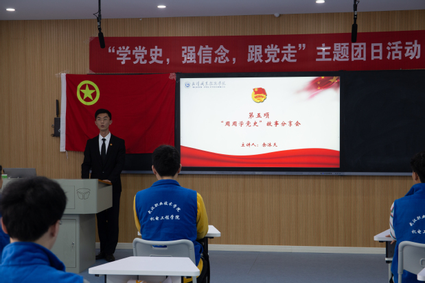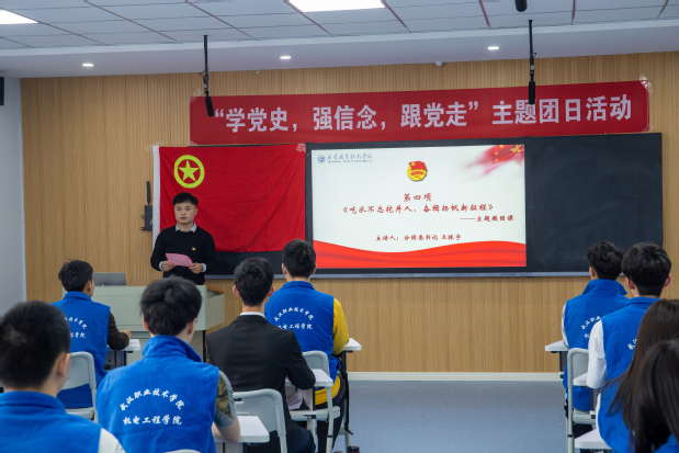 机电工程学院分团委书记王振宇以《吃水不忘挖井人,奋楫扬帆新征程》为题,为现场学子讲述了一节生动且富有思想启迪的主题微团课。