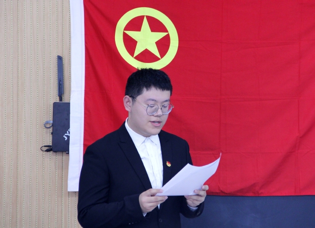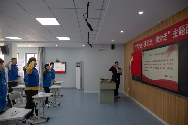 “我志愿加入中国共产主义青年团,坚决拥护中国共产党的领导……”在鲜红的团旗下,支部成员高举右手,紧攥拳头,在盛虎带领下重温入团誓词。嘹亮激昂的宣誓声,彰显了团员们坚定信念跟党走,不忘初心勇争先的信心和决心。在催人奋进的《不忘初心》红歌声中,活动落下帷幕。