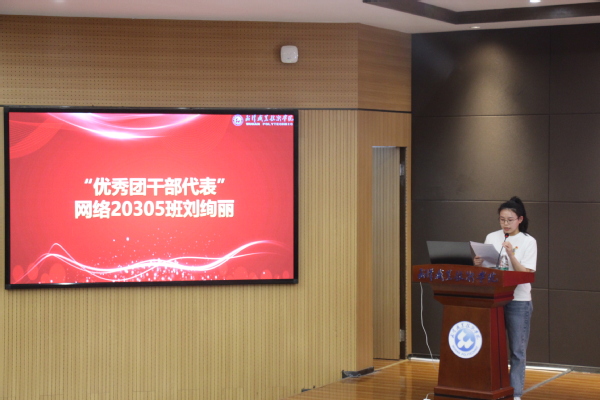 网络20305班刘绚丽作为“优秀团干部”代表发言,号召全体团员青年铭记团员职责与义务,勤于学习,乐于奉献,用实际行动践行责任担当。“优秀共青团员”代表、大数据20302班刘娇表示要把人生理想与祖国、与时代紧紧联系在一起,做新时代的社会主义事业建设者和接班人。