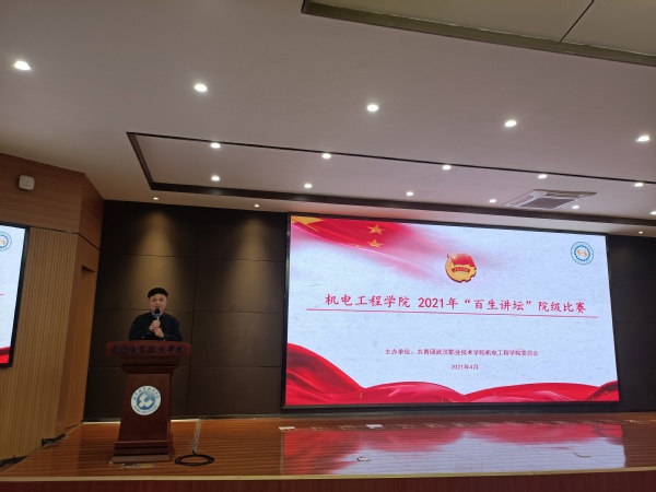 武职网讯(通讯员 樊霞)4月18日上午,机电工程学院2021年“百生讲坛”优秀主讲人、活力团支部院级决赛在凌峰楼C11报告厅举行,该院团学骨干、2020级部分团支部委员百余人到场观摩,14个团支部、7名主讲人上台展示风采。现场高潮迭起,气氛热烈。