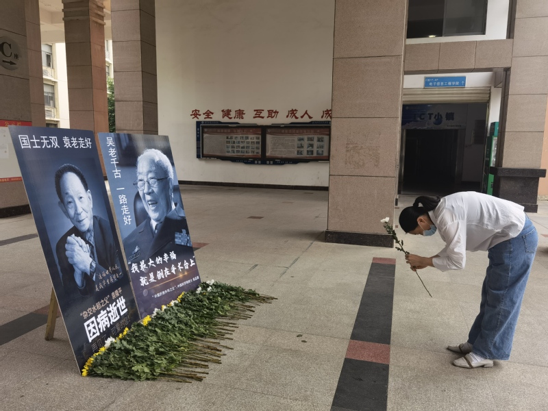 自愿参加悼念仪式的还有外语外贸学院、计算机技术与软件工程学院、电子信息工程学院、机电工程学院师生。大家表示,得知两位院士离世的消息内心非常难过,袁老和吴老虽然离开了,但他们的精神永存。