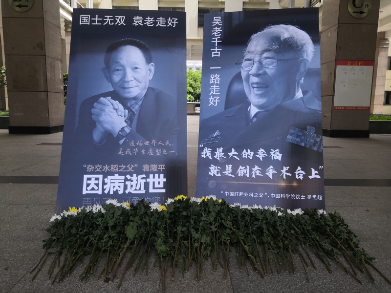 武职网讯(通讯员 徐辉 严芮)5月22日,袁隆平和吴孟超两位院士同一天不幸离世的消息传来,举国同哀!5月24日上午,纺织服装工程学院师生自发在凌曦楼一楼大厅举行袁隆平院士、吴孟超院士悼念仪式,缅怀为国人实现“医食无忧”目标而奋斗终生的两位杰出人物。