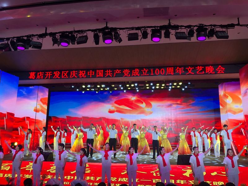 本次文艺晚会由红色记忆、峥嵘岁月、金色土地、百年启航四个部分组成,展现葛店红色历史和抗疫精神的歌舞、楚剧、情景剧等表现形式,将建党100周年的祝福之情、感恩之情、鼓舞之情淋漓尽致地表达出来。