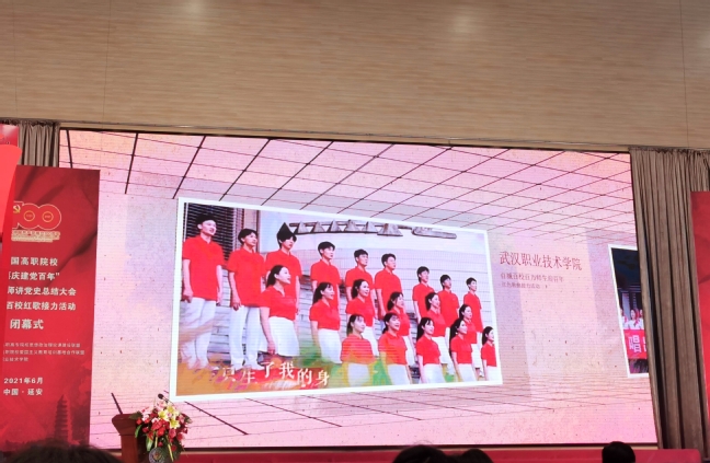 武职网讯(通讯员 余娜 摄影 罗露)诗以言志,歌以咏怀。6月19日上午,全国高职院校“喜庆建党百年”百名名师讲党史总结大会暨百城百校百万师生红歌接力活动闭幕式在延安职业技术学院召开,武汉职业技术学院报送的视频《少年》在红歌接力活动中荣获一等奖。
