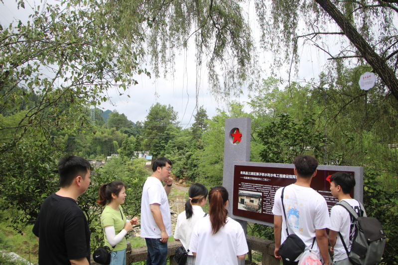 接着,商学院师生团队来到刘家坝老发电房。据了解,张富清带领群众率先探路,用石头垒起了这座具有划时代意义的小水电站,它的出现解决了这一带用电照明及近千亩农田灌溉问题。沿刘家坝引水渠一侧,是狮子桥水利水电工程建设指挥部旧址和狮子桥水库,这里见证了三胡乡人民群众的智慧和力量,也见证了张富清“一心为公、不怕牺牲、排除万难、争取胜利”的奉献精神。