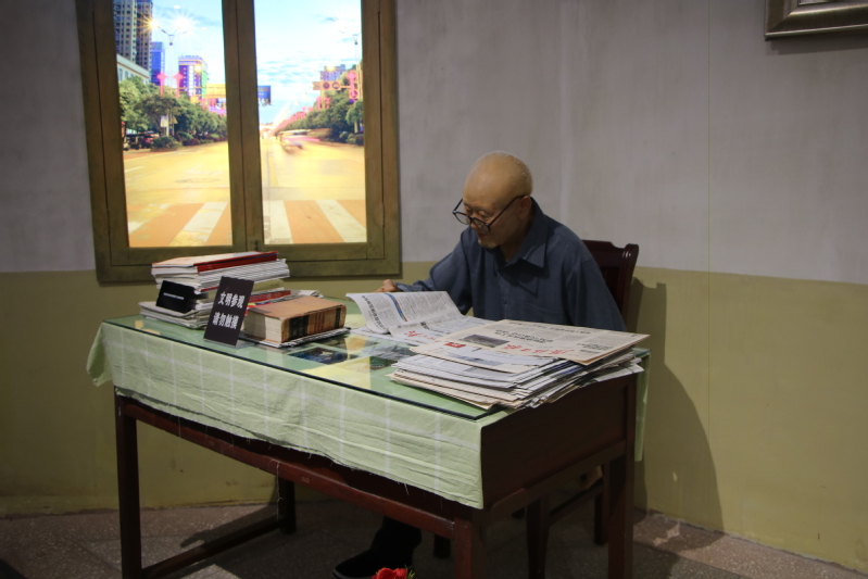 张富清展馆中张富清日常工作蜡像