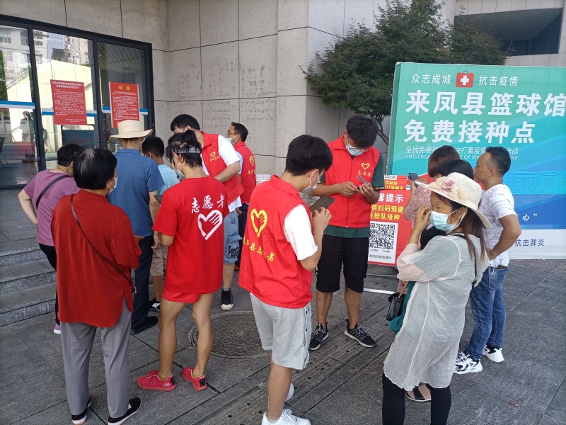 团队在来凤县体育中心志愿服务疫苗接种工作