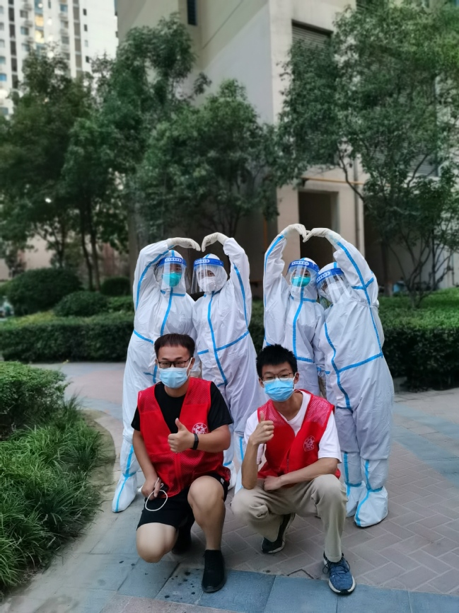 “涝疫结合”中的旅游学子宋壮壮(前排左一)