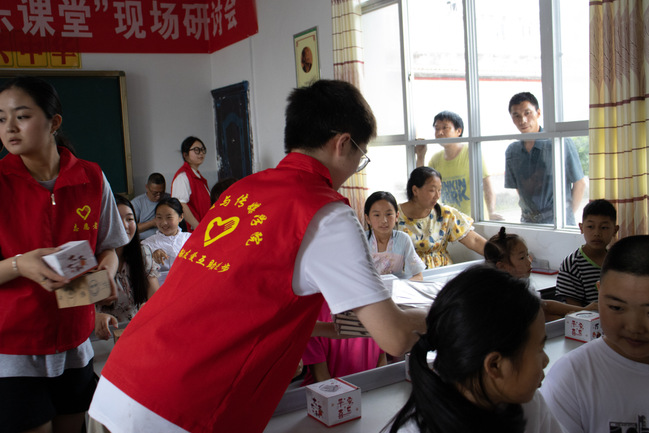 开班仪式临近尾声,文传学院志愿者们为学生们发放礼物。一份份“破冰礼物”让孩子们脸上洋溢出纯真的笑容。“荧光逐梦”志愿服务队队长赵子立在采访中表示,这次社会实践活动很有意义,我能够深刻理解老师叮嘱的“受教育、长才干、作贡献”的意义所在。