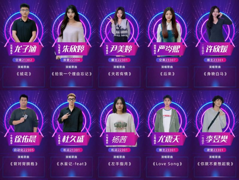 旅游与航空服务学院龙子涵演唱的《绒花》柔美而深沉,勇夺第一名。建筑工程学院李昱樊深情演唱《你就不要想起我》,获得第二名。旅游与航空服务学院的杨茜演唱的《左手指月》获第三名。