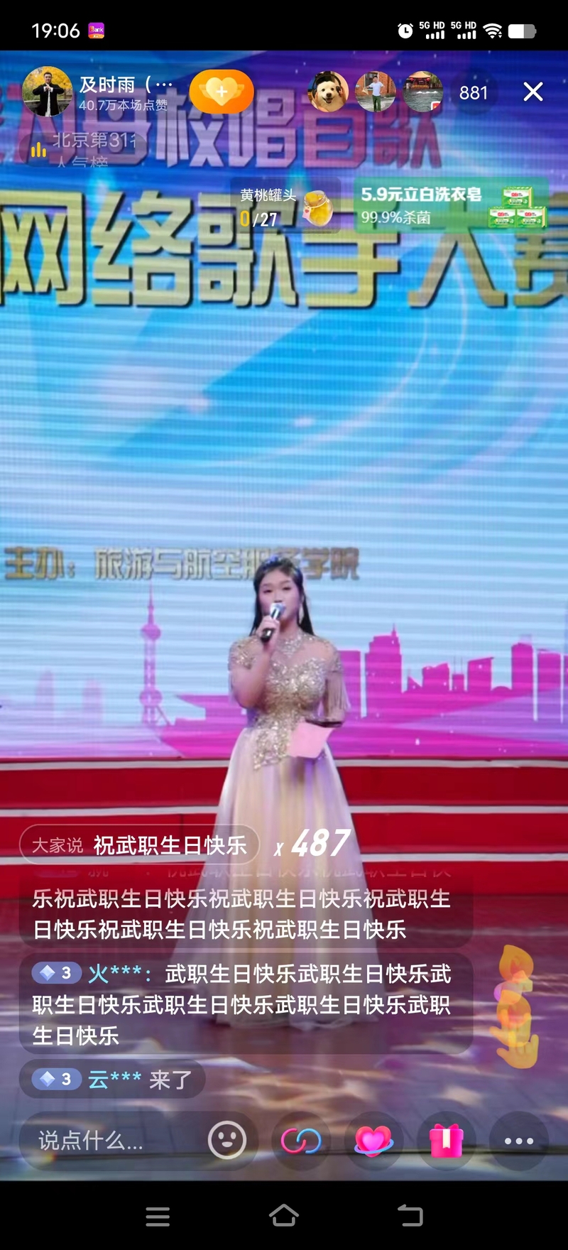 武职网讯(通讯员 肖卓君)10月23日,由旅游与航空服务学院主办, 武汉子秋传媒科技有限公司、 武汉美朵颐餐饮管理有限公司协办的“我为武职唱首歌,献礼校庆五十载”校园网络歌手大赛,经过八天的比赛圆满落下帷幕。
