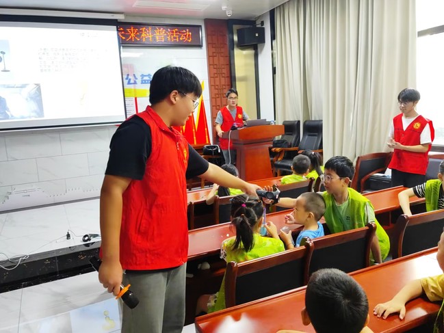 志愿者为小朋友们介绍电子器材
