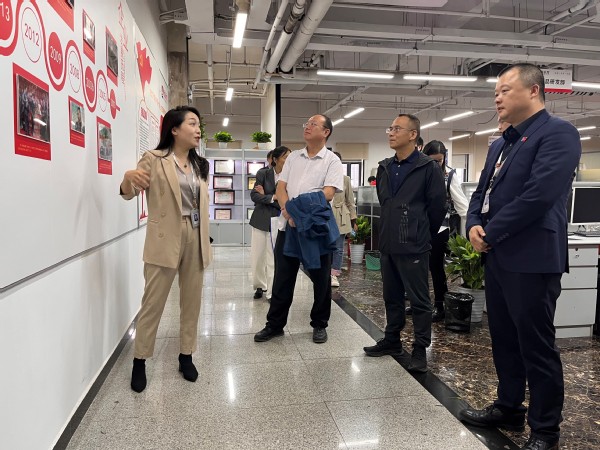 涂运祥一行在朱运德及公司团队陪同下参观了企业文化长廊,详细了解武汉起点公司发展历程、运行新机制、公司文化以及区域产业人才需求状况。