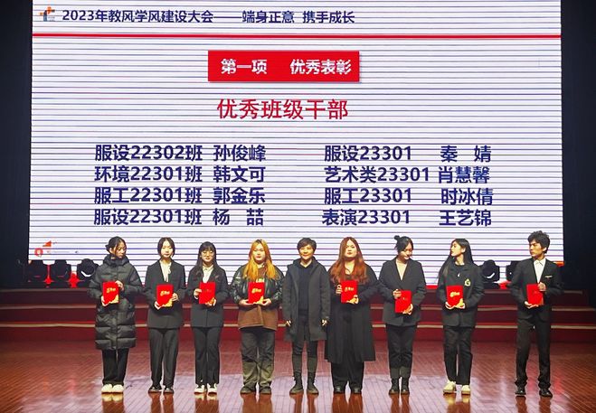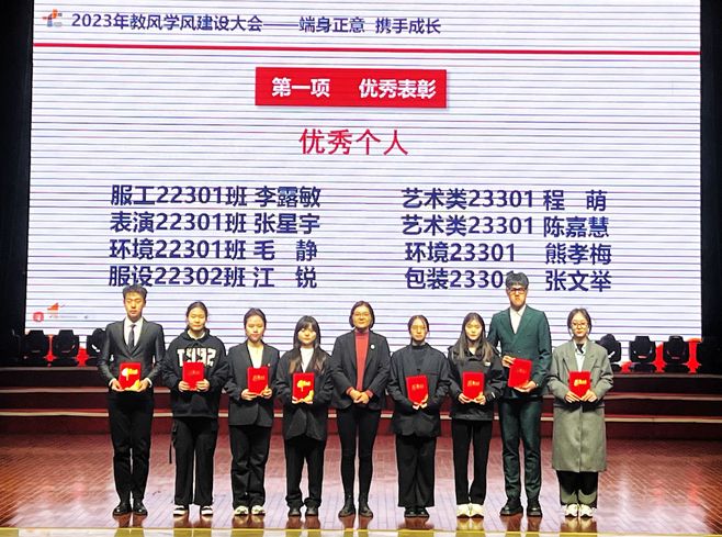 大会以全体师生庄严合唱国歌拉开帷幕。纺服学院党委副书记陈玲玲宣读表彰文件,纺服学院领导班子成员为2023年度优秀个人、优秀班干、优秀班集体颁奖。