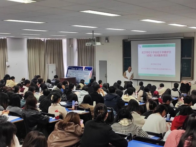 武职网讯(通讯员 汪波 李相萱 韩鹏)12月9日,武汉市江夏区红十字救在身边应急救护服务中心的专业医师走进武职校园,为空中乘务专业350名师生开展红十字救护员(初级)公益培训。这是今年11月以来该中心受邀第二次来校开展公益培训。