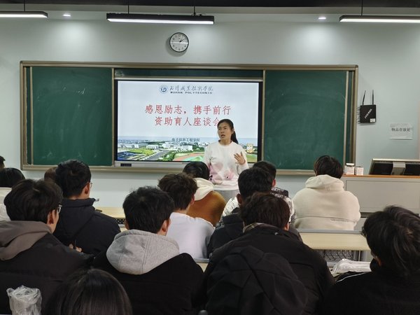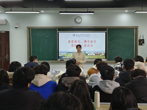 武职网讯(大学生记者 胡洁 摄影 谭宏伟)榜样引领,资助育人。12月12日下午,电子信息工程学院举办“感恩励志 携手前行”资助育人座谈会,5名2022级国家奖学金、国家励志奖学金获得者分享了优质高效学习的经验和心得。光电教研室、节电教研室教师代表,资助工作干事、辅导员代表以及40名2023级班长、学习委员参加座谈会。座谈会由电子信息工程学院党委副书记代春兰主持。