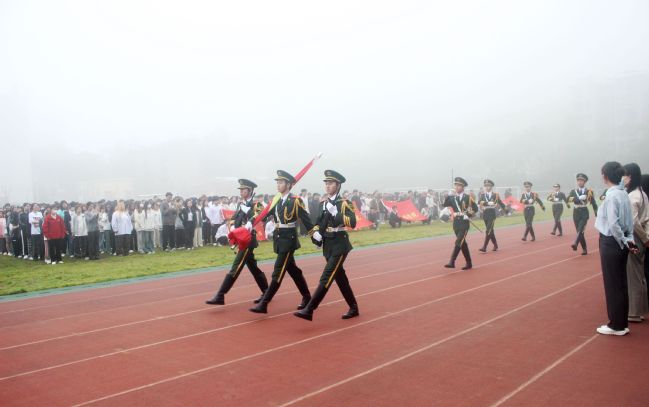 新闻网讯(通讯员 夏露露 摄影于笑贺、杨喆)4月15日,是我国第九个全民国家安全教育日。当日清晨,由校团委主办,纺织与服装工程学院(以下简称“纺服学院”)承办的“国家安全,青春挺膺”升旗仪式暨示范主题团日活动在光谷校区田径运动场举行。学校保卫处、校团委、学生工作处等部门主要负责同志,纺服学院相关负责人,各二级学院分团委书记、教师和学生代表1000余人参加主题教育活动。