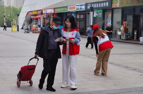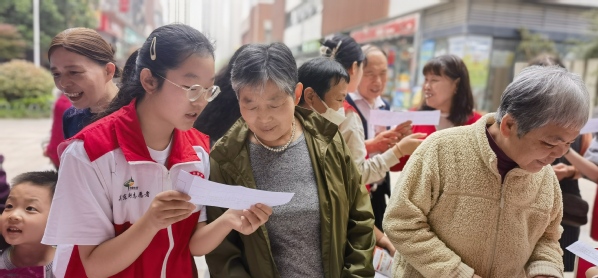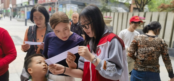 学生发放“全民国家安全教育日”宣传资料,为社区居民作普法宣讲