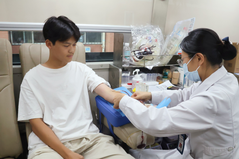 上午10时,各献血站点有不少学生排队等待着献血。参与活动的学子们在志愿者引导下进行信息登记、咨询体检、初筛化验,各项指标合格人员依次献血,现场井然有序、有条不紊。在保证献血者健康安全的基础上,组织单位为献血师生提供面包、功能饮料等保障物资,让爱心温暖每一位献血者。