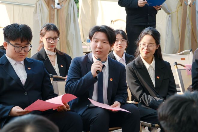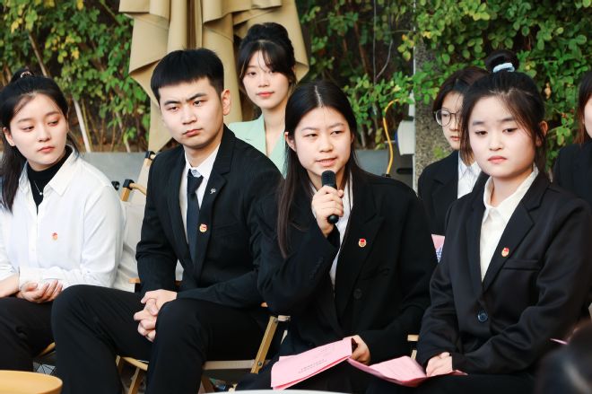 “百生讲坛”省级银牌主讲人李晓庆、国家奖学金获得者韩怡辰、世界职业院校技能大赛全国金奖获得者陈子琪、首届全国职业规划大赛银奖获得者郭赵宇环依次分享了各自的备赛、竞技心得及学习经验。多名学生代表踊跃发言,交流了在校学习生活、成长发展的感悟感受。