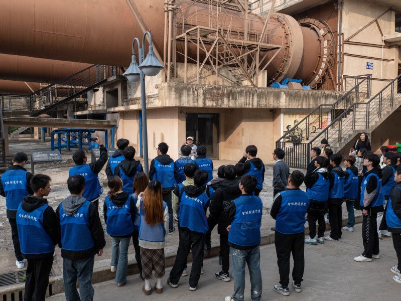 “创建于1907年的华新水泥厂(华新水泥股份有限公司)是我国建成最早的现代水泥生产企业,被誉为中国水泥工业的摇篮。”师生在园中穿梭“钢铁丛林”,感悟华新人在面对困难和挑战时坚韧不拔的奋斗精神及爱国情怀。