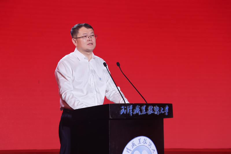全国优秀教师、智能制造学院院长朱红教授作为教师代表发言,她勉励新生要保持热爱,在课堂、球场、图书馆中感受成长乐趣;要学会包容,将实训失败、知识短板转化为精进技能的动力;要守护梦想,以自律打磨操作细节,让大学时光成为人生蜕变的基石,在武职大书写温暖而坚定的青春记忆。