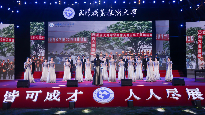 第一篇章“薪火相传”中,凌零合唱团选送的《汉阳门花园》《我们去远航》,以温暖和声献上对武职大的深情礼赞;智能制造学院与光电与信息工程学院联袂推出的情景剧《跨越八十年的对话》,采用极具创意的抗战老兵与当代学子时空对话的呈现方式,发出“科技报国就是新时代钢铁长城”的时代强音;凌云舞蹈队演绎的民族舞《玉鸟》,从良渚文明中汲取灵感,展现五千年文化底蕴;建筑工程学院李昱樊创作的声乐作品《白色眼睛》,用激昂旋律唱响青春宣言。