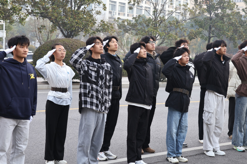 6时50分,校国旗仪仗队队员身着礼服,迈着铿锵有力的步伐穿过人群,稳稳护卫国旗至旗杆下。当雄壮的《义勇军进行曲》奏响,五星红旗冉冉升起,全体师生肃立、行注目礼,嘹亮的歌声里,爱国情怀与廉洁信念在庄严肃穆中交汇激荡,定格成深秋校园里动人的画面。