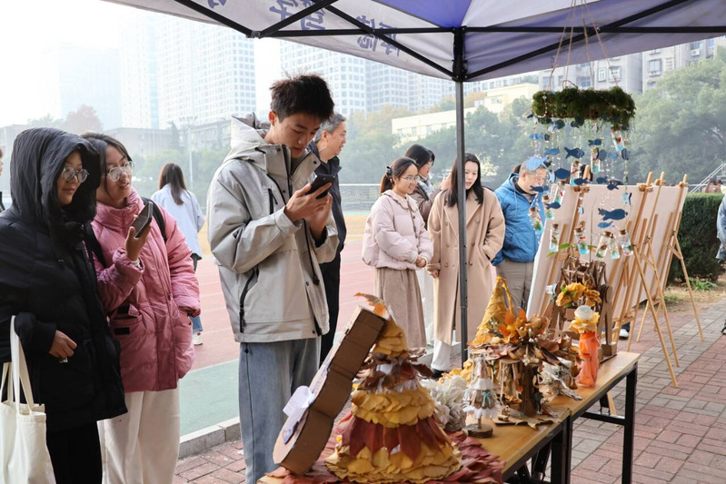 作为本次活动的亮点,“纸造万物”废旧物品创意再造大赛与“腾飞杯・清风奖”书法大赛清廉作品展示区里,废旧材料焕新而成的创意装置、笔走龙蛇见风骨的书法作品格外吸睛 。师生们纷纷驻足,或俯身品鉴,为心仪的作品投下一票,廉洁理念在审美互动里浸润心灵。